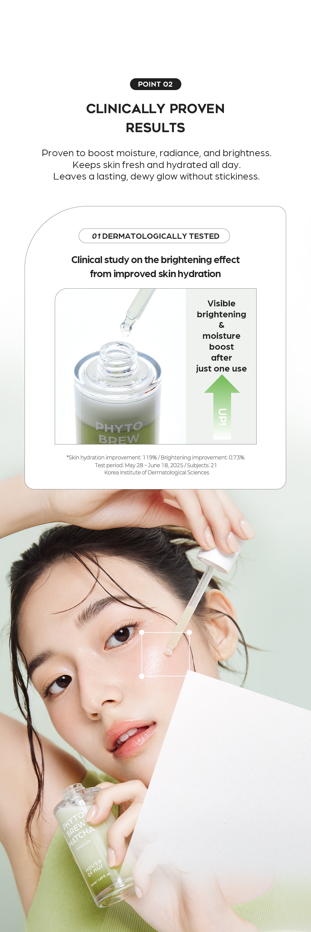 Unveil calm, hydrated skin with the Phyto Brew Matcha Ampoule.